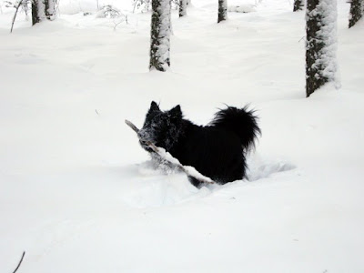 Im Harju ist wieder tierisch Skiläufer-Alarm. Da Seita die zu gern jagt, sind wir lieber abseits aller Loipen - und Wege - gestapft.